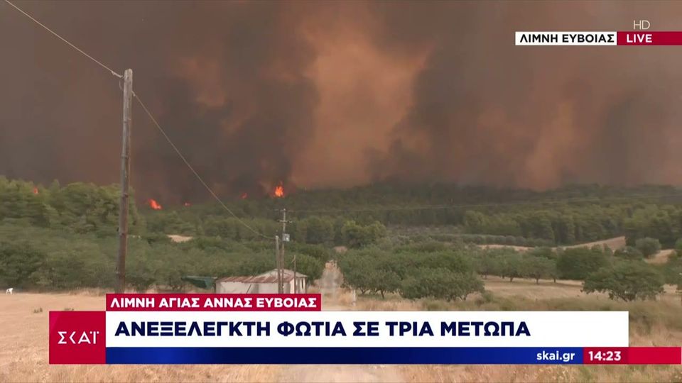 Το μεσημέρι της τετάρτης 4 αυγούστου υπάρχουν 3 ενεργά μέτωπα της φωτιάς.